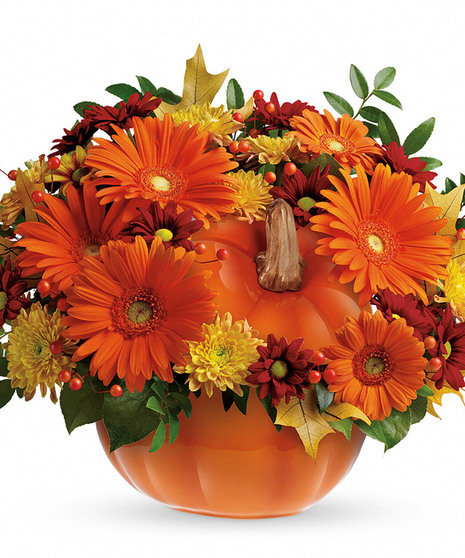 Perfect for a fall centerpiece, birthday or Halloween party, this flower-filled ceramic pumpkin is a real cutie-pie.