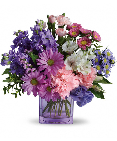 If you're looking for a delightful gift that's full of heart, look no further than this beautiful bouquet. A pretty mix of beautiful flowers arranged in a cube vase will express your wishes perfectly.
