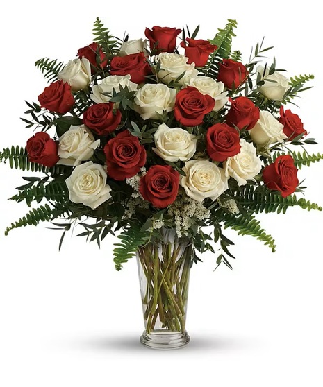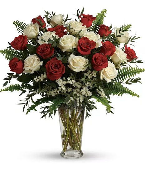 Make your special someone feel truly loved by surprising them with this extraordinary bouquet! A timeless, romantic arrangement that blends classic red and white roses with fresh greenery for a refined yet approachable look. Suitable for anniversaries, expressions of love, sympathy gestures, or elegant everyday gifting.