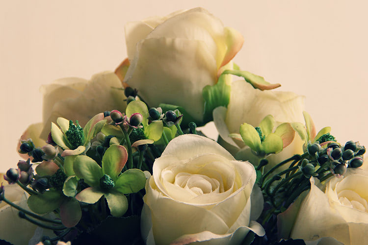 Roses work well for most occasions. Dark crimson shows deep love and mourning, making crimson roses a good choice for a funeral bouquet.