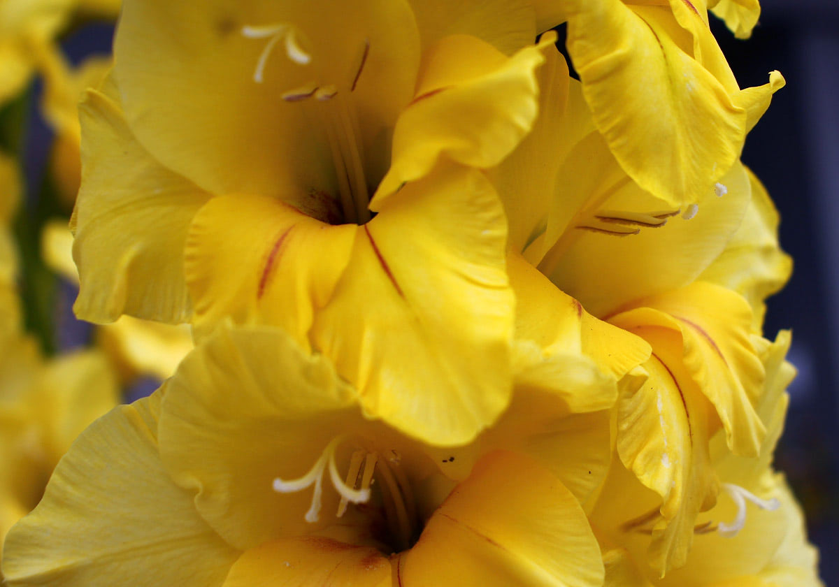 Gladiolus blooms are funnel-shaped and usually range from 2 to 4 inches wide. Their sturdy stems allow them to stand tall in any arrangement, whether as a focal point in a vase or as part of a larger floral display. Though they're bold and striking, gladiolus flowers are also incredibly versatile, pairing beautifully with a variety of other blooms and greenery.