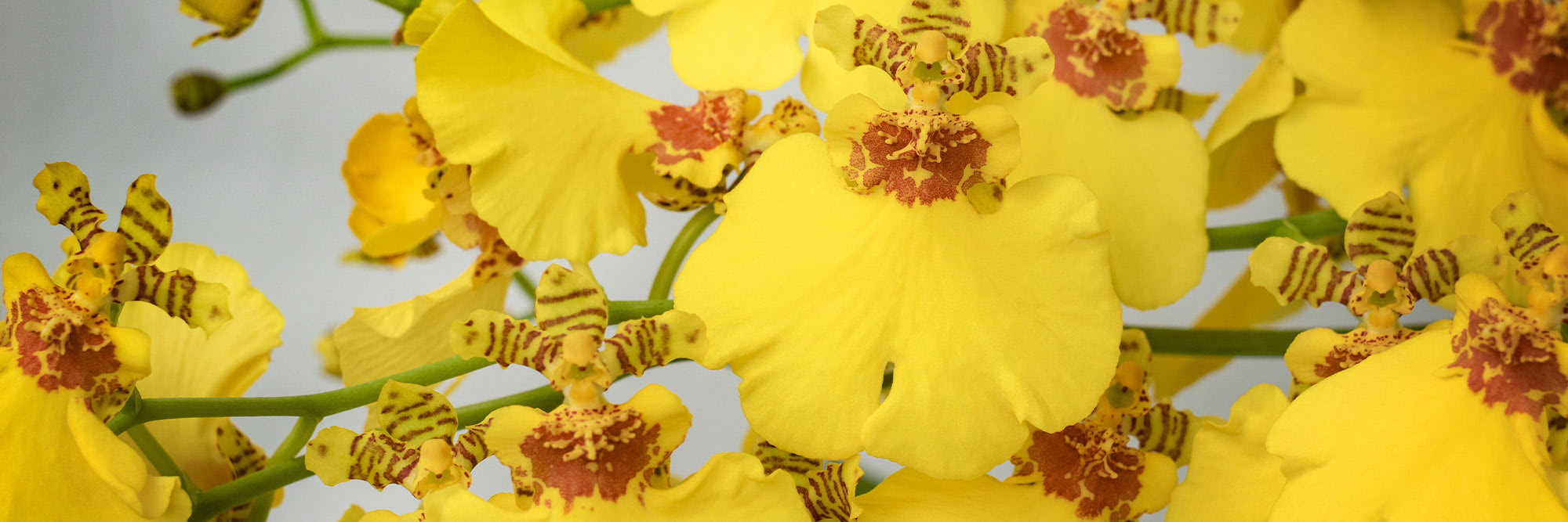 Belonging to the large and diverse Orchidaceae family, oncidium orchids are native to mountainous and forested landscapes throughout Central and South America. They prove to be popular houseplants thanks to their air-purifying qualities, ability to adapt to most environments, and unique beauty. Unlike other types of orchids, oncidiums are lovingly called "dancing lady" orchids since their blooms resemble dancers in flowing skirts. They boast sprays of small to medium-sized flowers with petals that have a slight crimp around the edges and can range in colors, from yellows and browns to pinks and patterns with multiple hues.