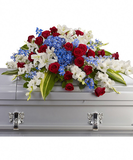A beautifully patriotic way to pay tribute to a loved one. This half-couch spray sends an eloquent message of strength, respect and freedom.